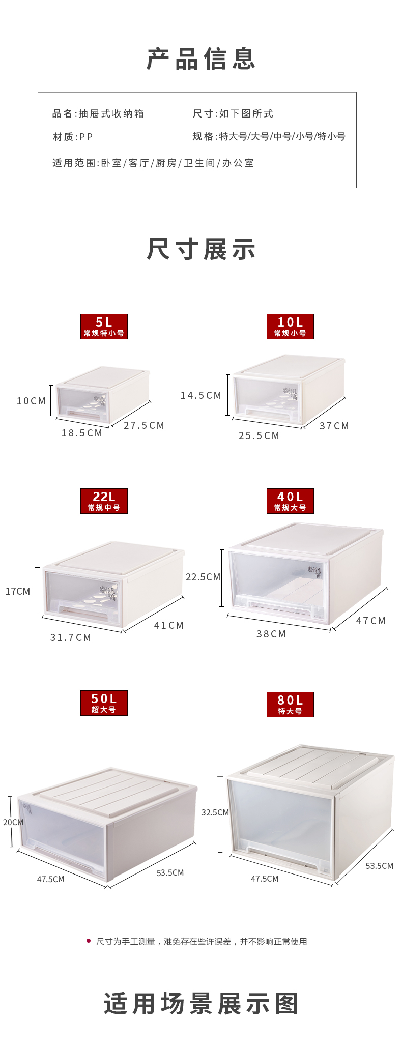 凡高(VENGO) 收纳箱 抽屉式收纳柜 40L带滑轮3个装特大号透明塑料衣物整理柜 床底储物柜
