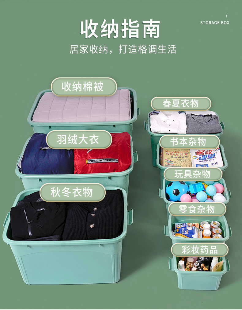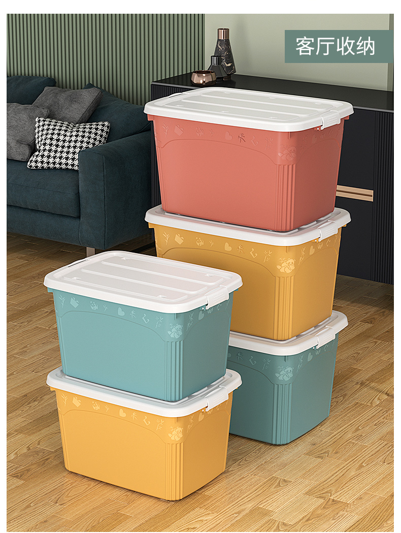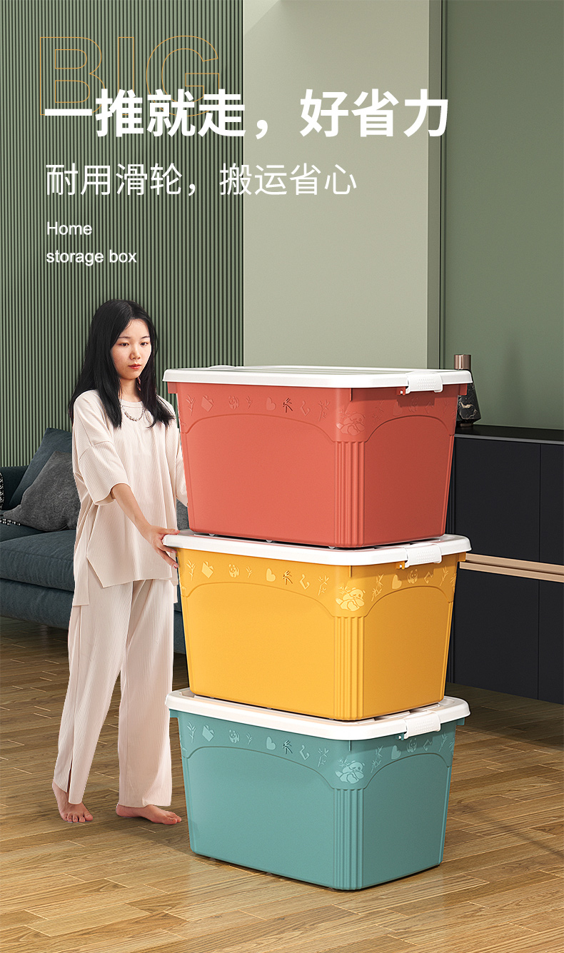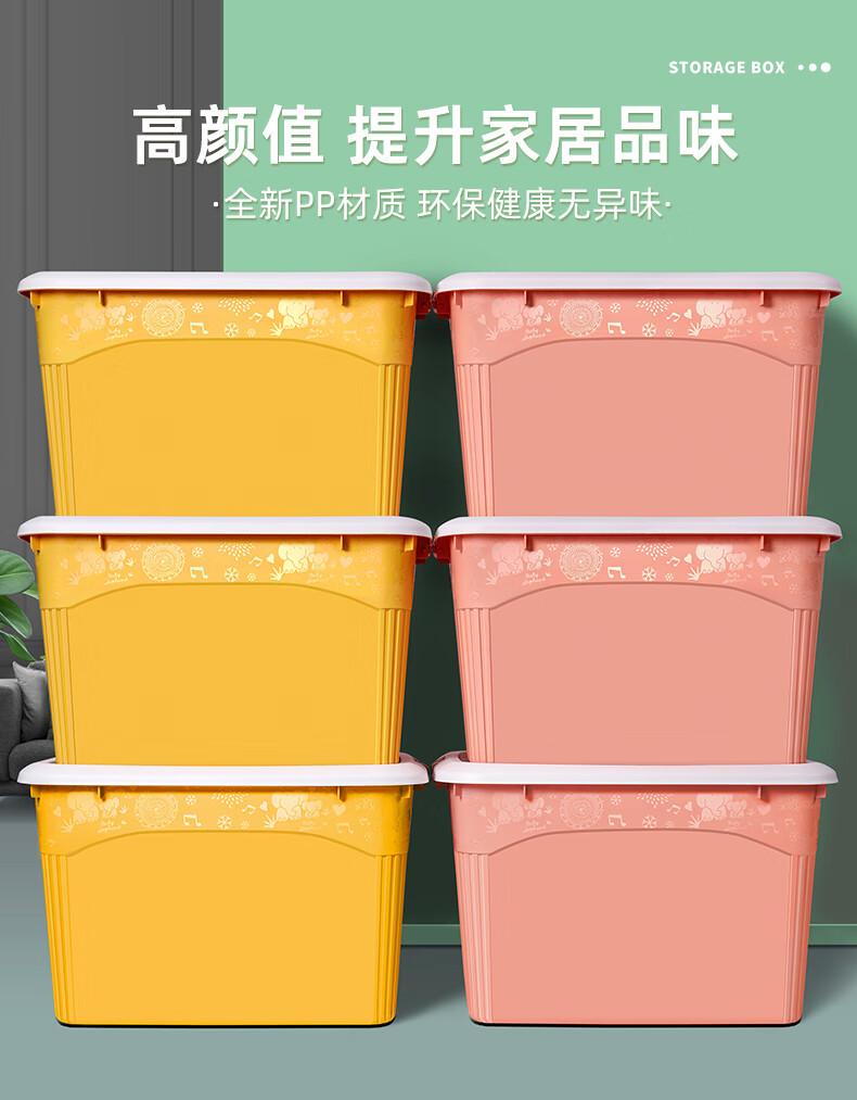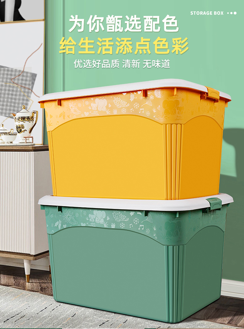 访客 收纳箱 衣服被子收纳箱特大号【120L 两只装】绿+橙 玩具储物搬家箱 打包塑料整理箱