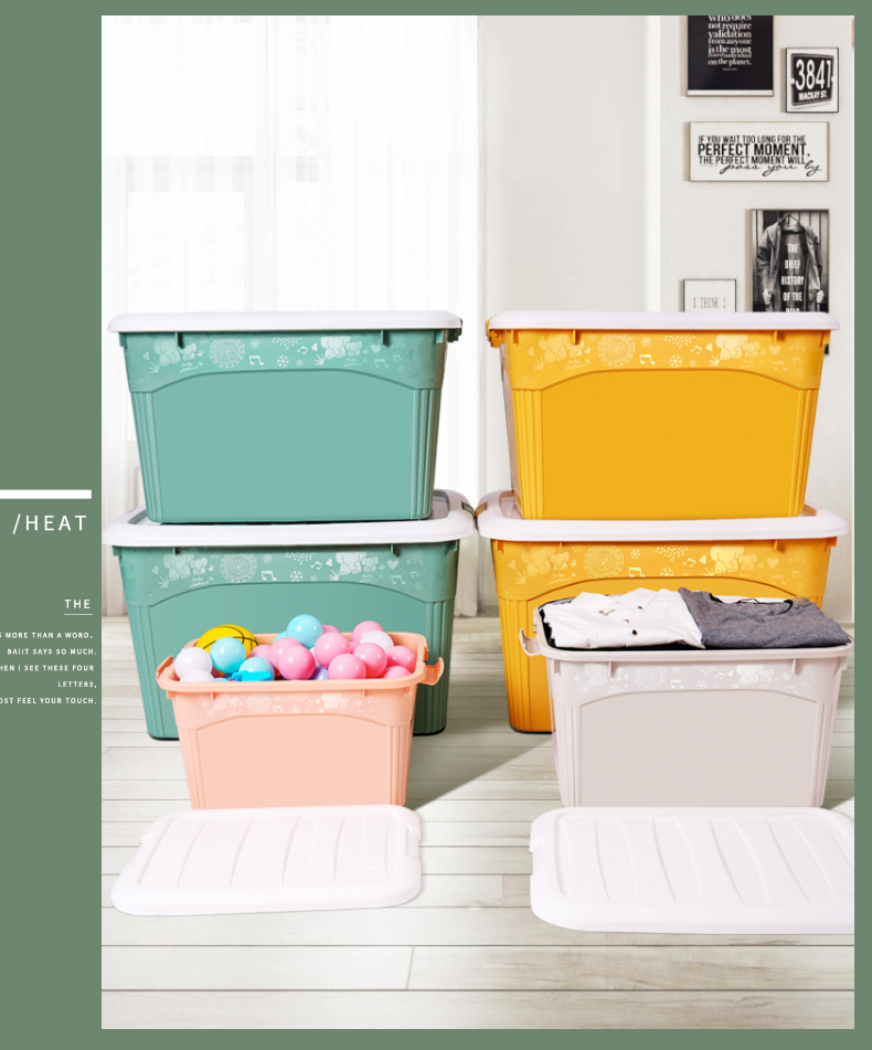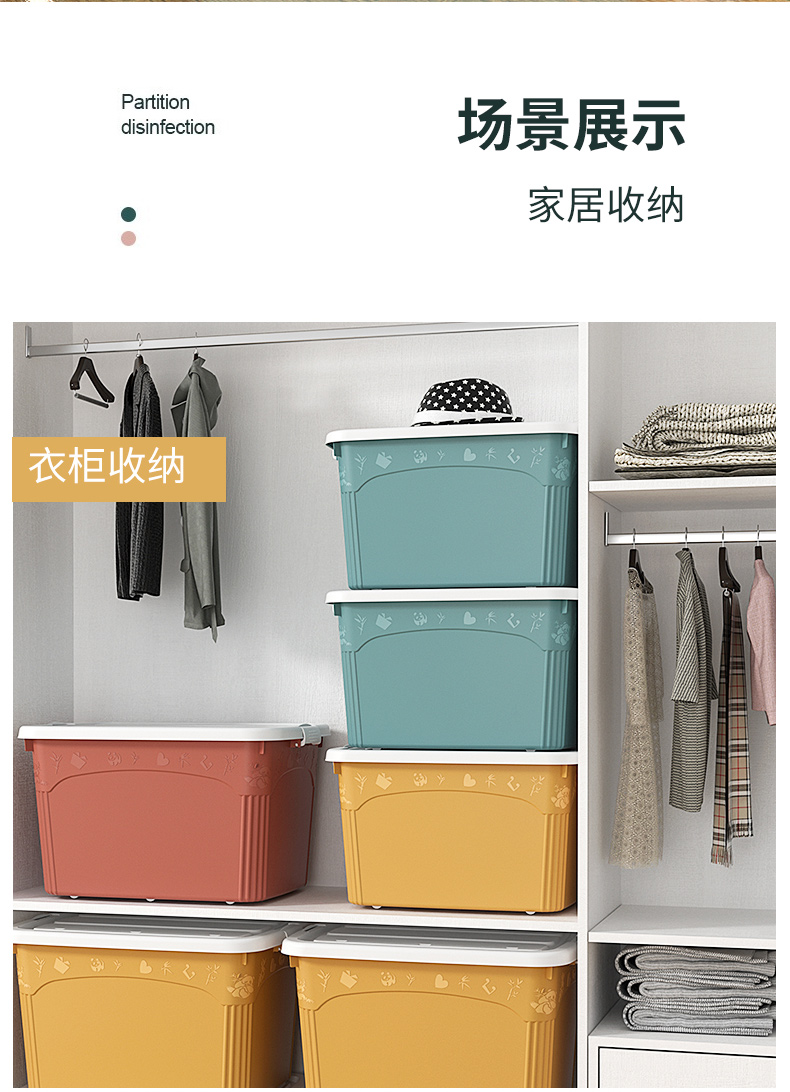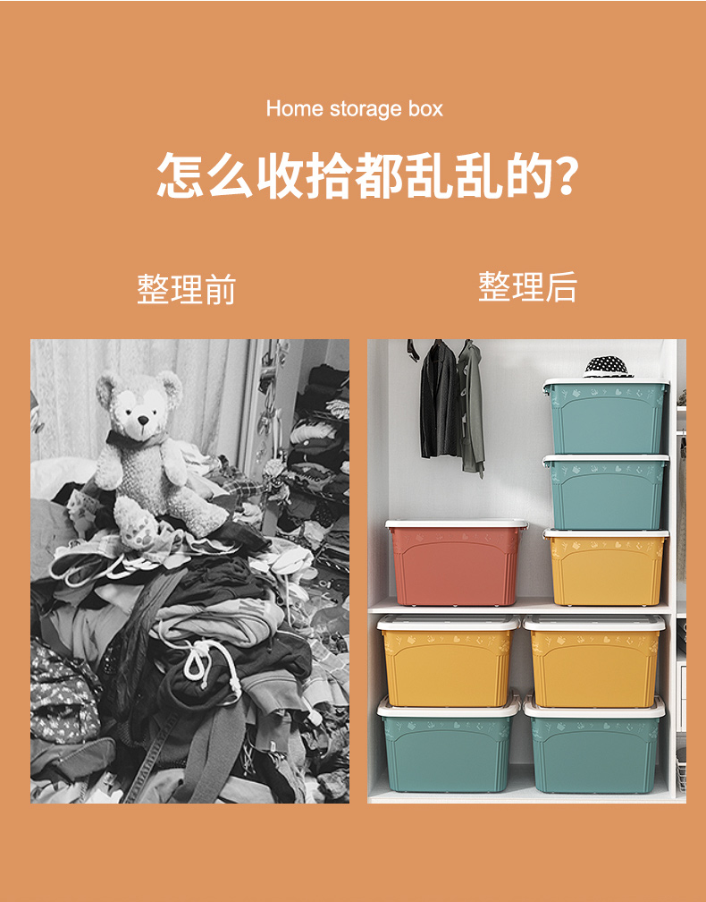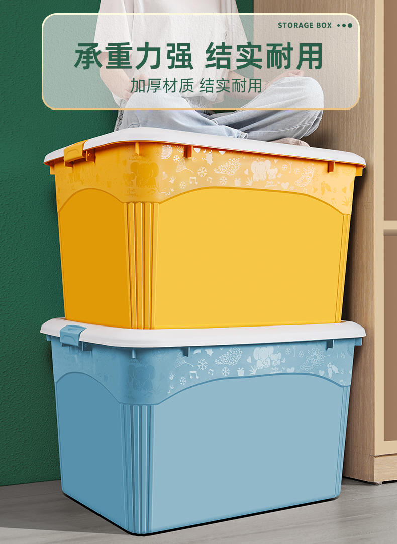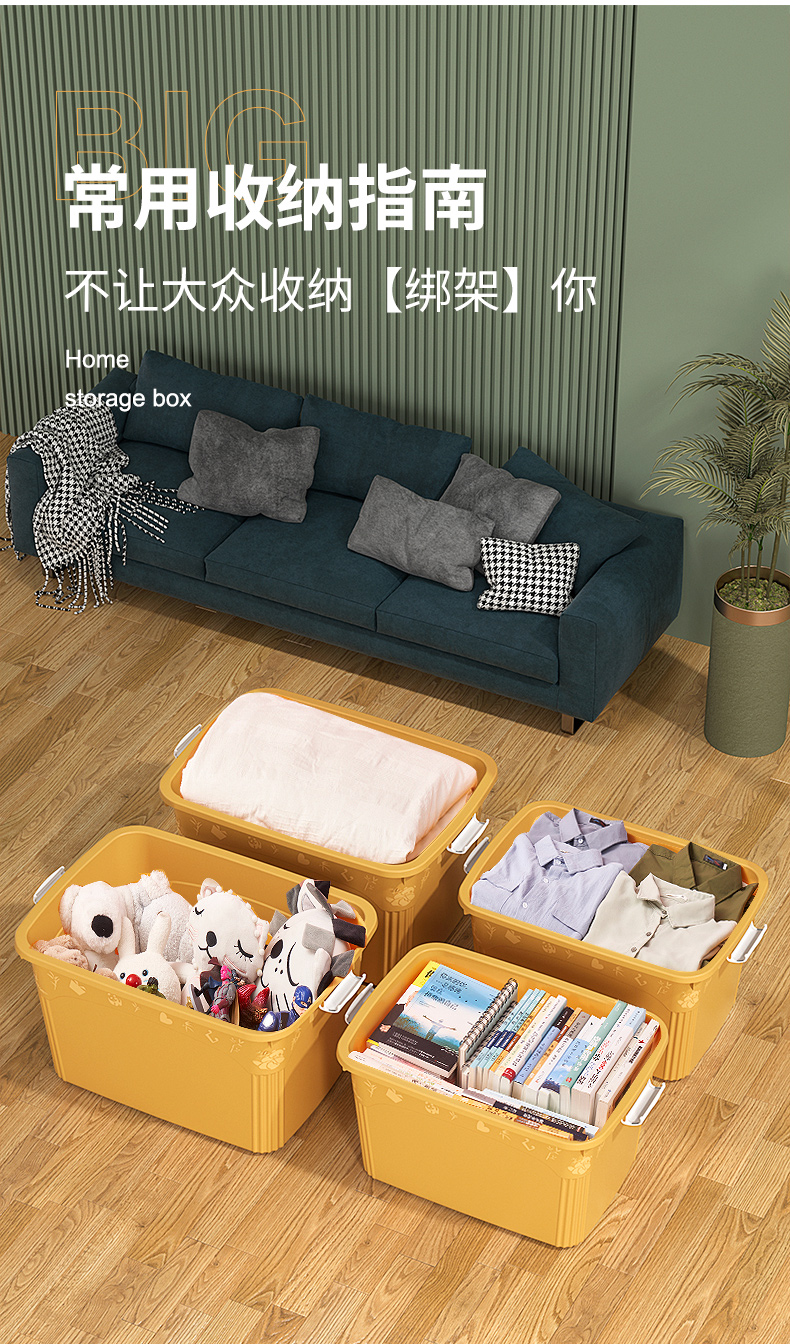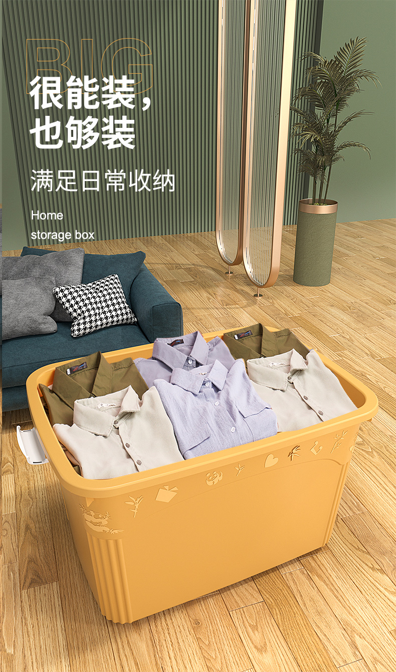 访客 收纳箱 衣服被子收纳箱特大号【120L 两只装】绿+橙 玩具储物搬家箱 打包塑料整理箱