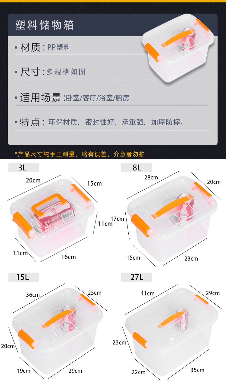 稳斯坦 W305 彩色带提手收纳箱 周转箱 带滑轮储物箱杂物工具带盖整理箱 蓝色3L