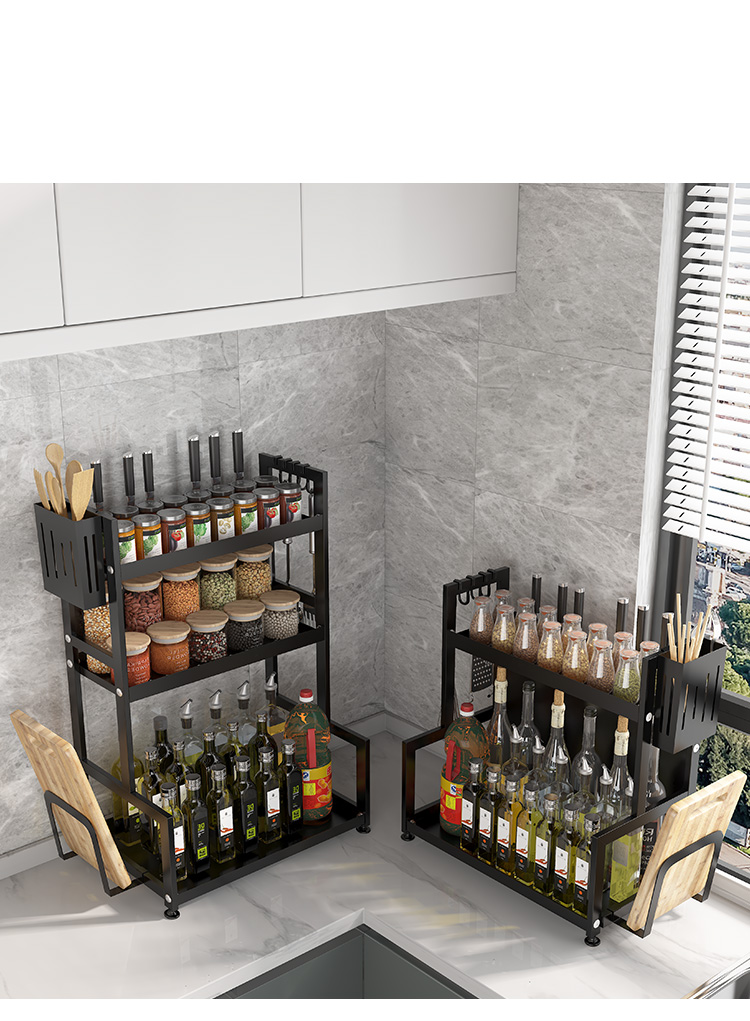 喻品 厨房置物架落地调料架收纳台面储物架刀架桌面调味架厨具用品多功能架子 ZW36双层40cm
