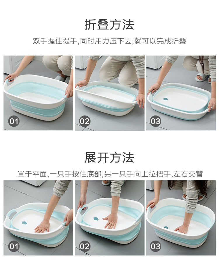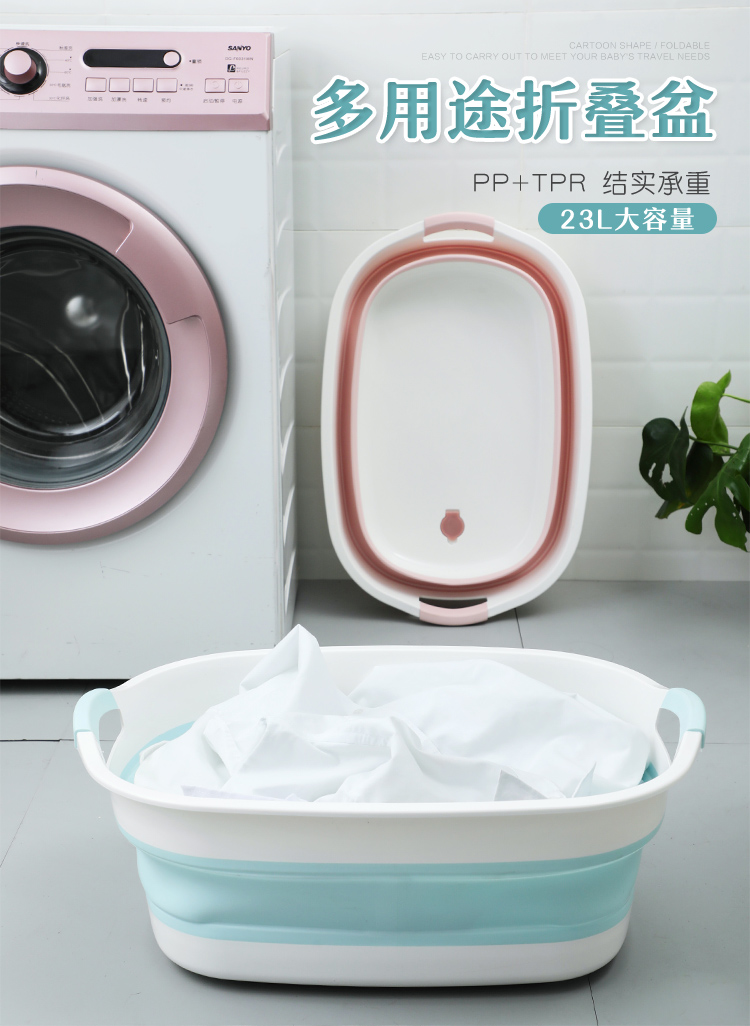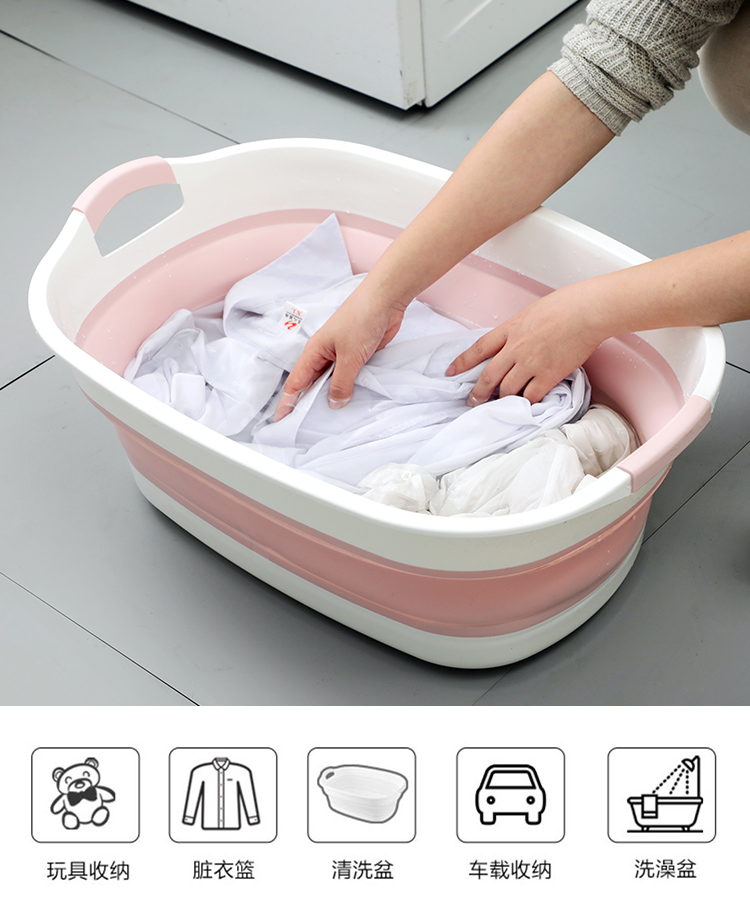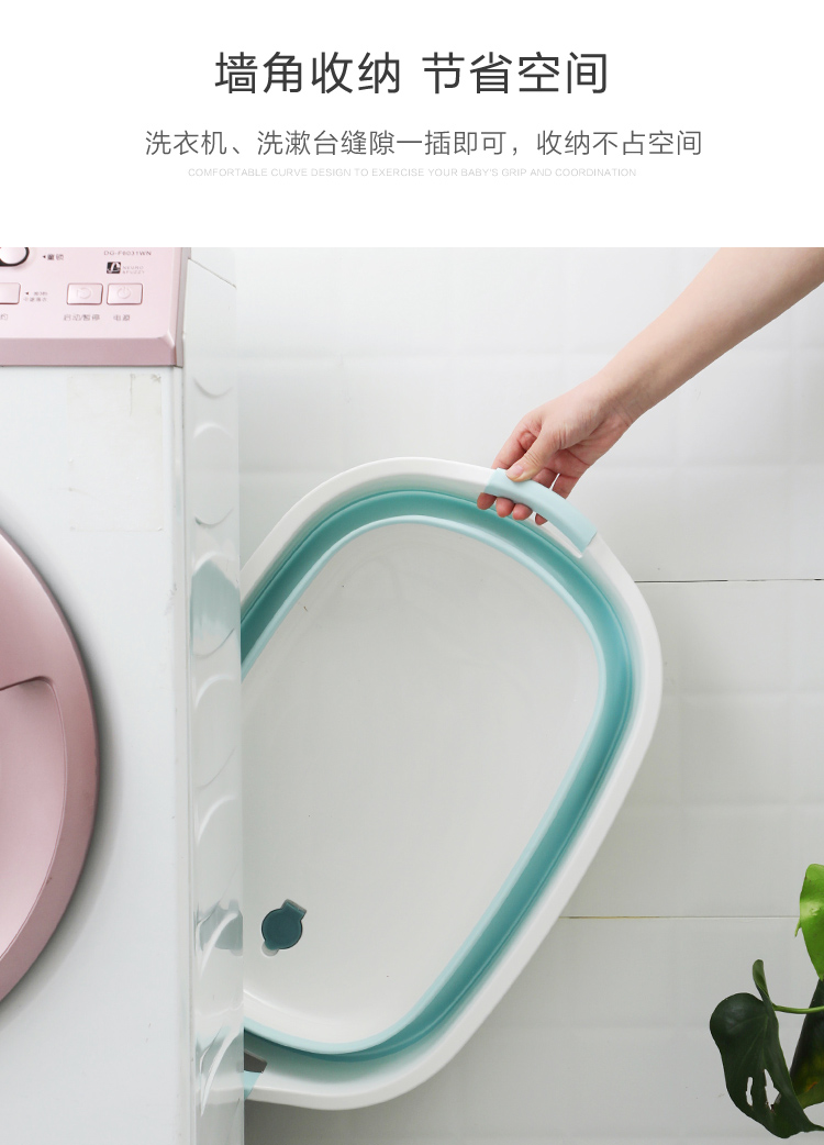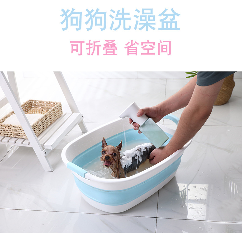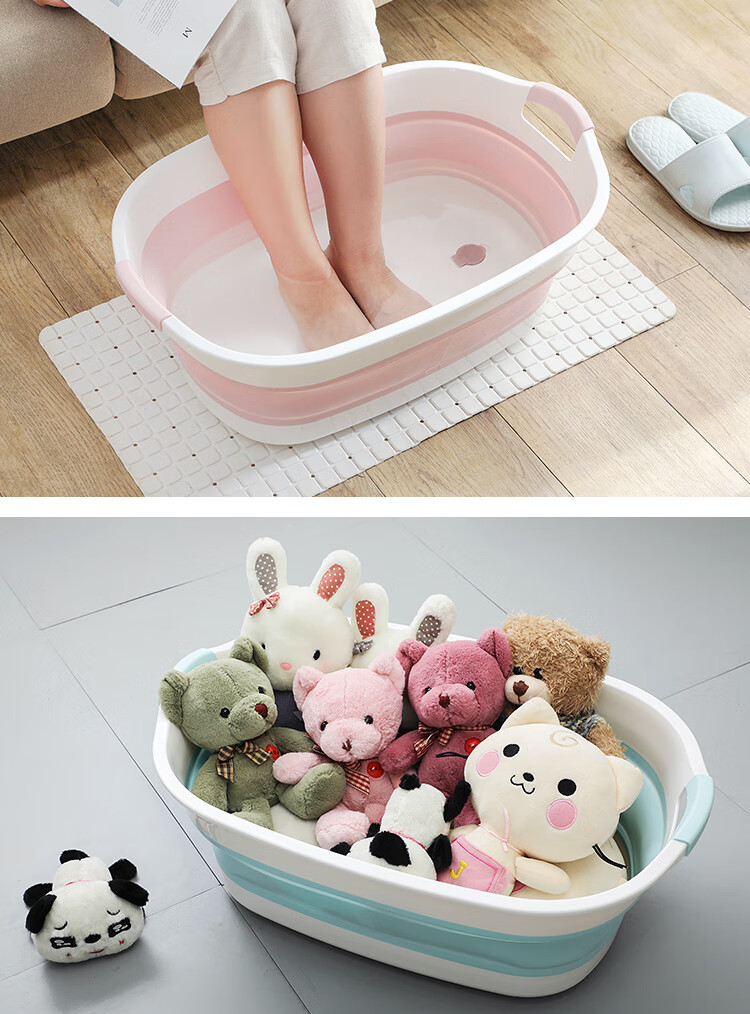可折叠洗衣服大盆子家用盆大号加厚塑料盆便携式洗衣盆宠物猫狗洗澡盆 蓝色大号"