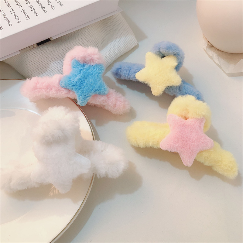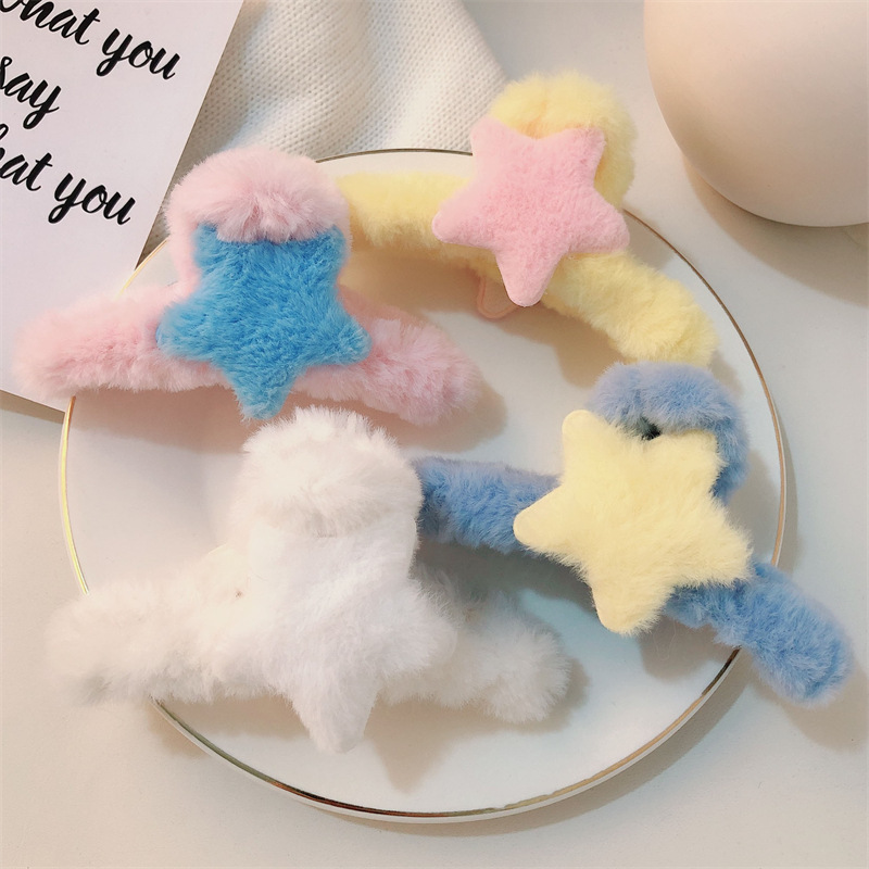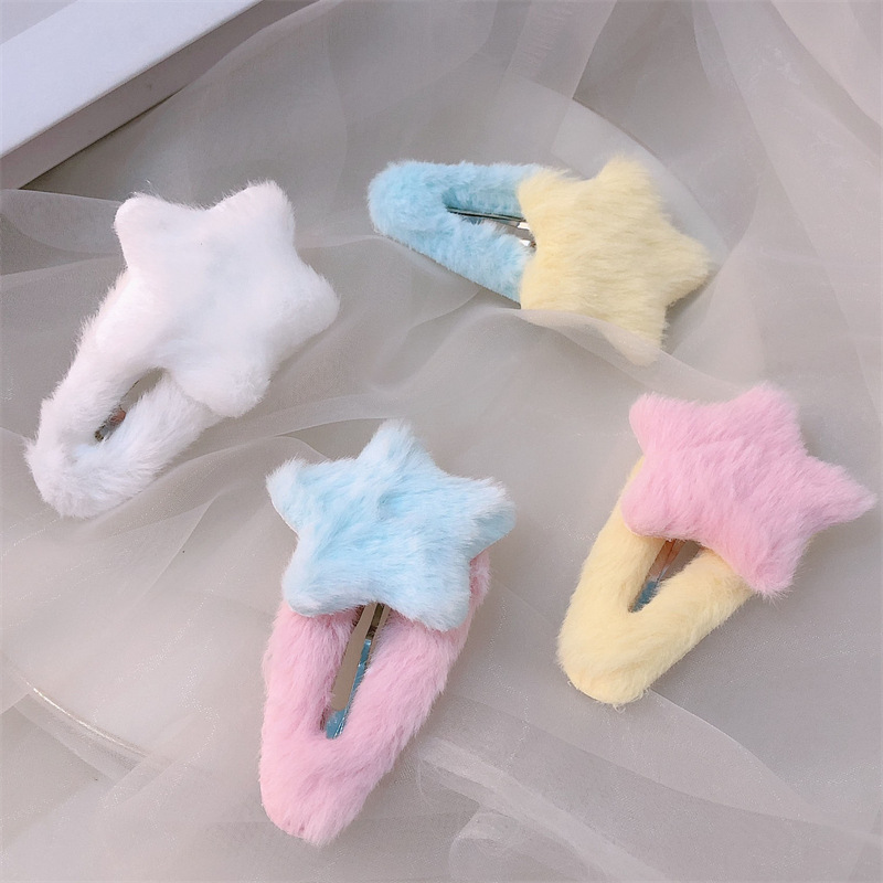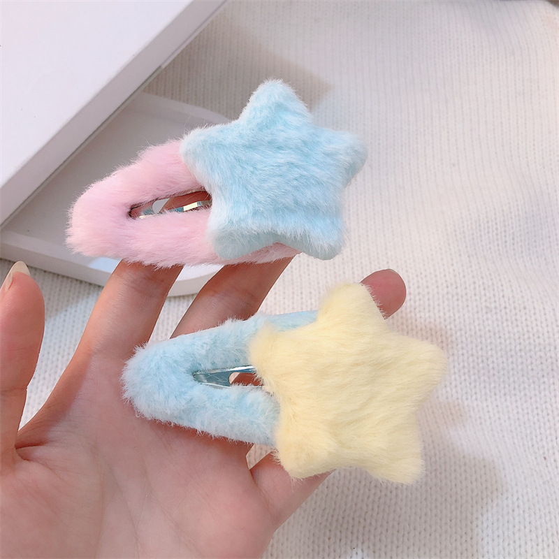 毛毛发夹星星发夹可爱秋冬温暖少女心学生刘海边夹头饰卡子发饰