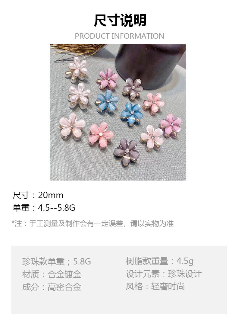 五瓣花珍珠夹子花朵迷你小号抓夹甜美发夹发饰刘海夹碎发夹子头饰